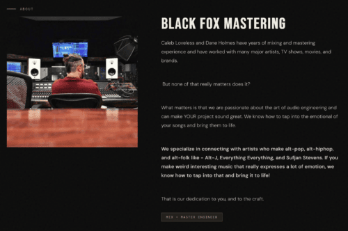 - A clear button: “Book a session,” “Request a quote,” or “Send a track.”
