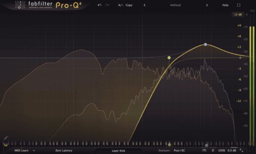 Now that we have a nice aligned layer, we want to use EQ to remove overlapping frequencies. For example, if you are using a sample for its low-end, use a high cut filter to remove the top-end so it doesn’t clash with the natural top-end of the live recording.