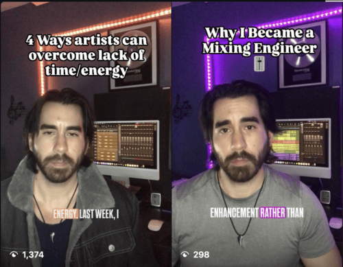 Please note, while it might seem tempting, don’t teach engineering on your social media! You are making content to attract artists, not fellow engineers. If you want to post educational content, don’t post “how to mix metal vocals,” instead post something that helps you and the artist to improve communication and nail the project, like “how to choose a reference track,” or “how to avoid mix notes that cost time and money.”
