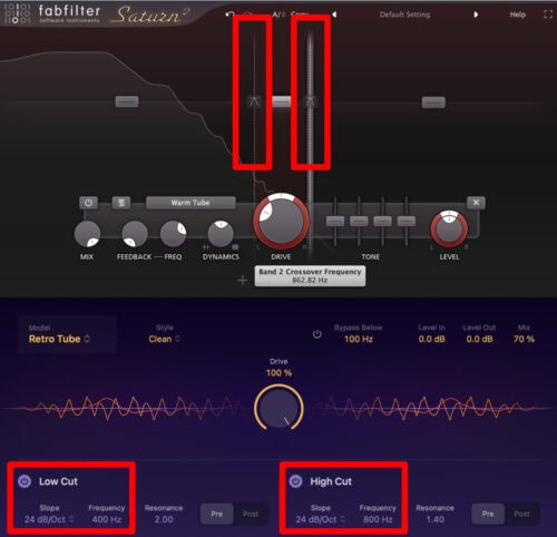 Group the Problem Frequencies: Identify exactly where the sound feels empty. Is the bass lacking “growl” (400Hz-800Hz)? Is the vocal lacking “air” (10kHz+)? Set the crossover points on your multiband saturator to isolate only that specific range. Turn of the other bands so they don’t add saturation to their frequency ranges.